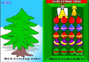 Bạn hãy dùng chuột để trang trí những vật bên cạnh lên cây thông Noel cho thật đẹp nhé.
