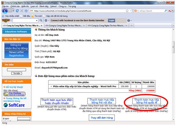 Trang chủ | Đặt mua phần mềm | Hướng dẫn mua phần mềm | Hướng dẫn thanh toán