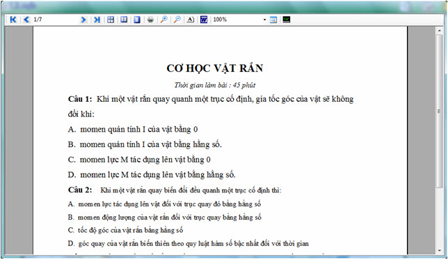Nháy nút để vào màn hình Xem và in đề kiểm tra này.