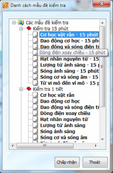 Nháy nút để vào cửa sổ chọn các mẫu đề kiểm tra như màn hình dưới đây: