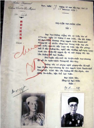 Từ biển Đông trên Cửu Đỉnh “Vấn đề biển Đông đã và đang trở thành một vấn đề thời sự không chỉ của Việt Nam mà còn của khu vực và một số nước trên thế giới, được đưa ra thảo luận và tranh cãi hằng ngày trong các cuộc hội thảo, hội nghị quốc gia và quốc tế với hình thức đối thoại song phương hoặc đa phương. Là một nhà nghiên cứu, là người con dân Việt, tôi rất trăn trở trước tình hình trên”- nhà nghiên cứu Phan Thuận An tâm sự. Sự trăn trở đó, cứ ám ảnh và thôi thúc ông phải làm một việc gì đó để góp phần khẳng định chủ quyền của Việt Nam trên biển Đông. Ngược dòng lịch sử, ông tìm đến bộ Cửu Đỉnh được đặt trong Hoàng thành Huế. Những bức ảnh tư liệu về bộ Cửu Đỉnh được các nhà nghiên cứu Pháp chụp từ những năm 30 lại hiện về trong tâm trí ông. Cửu Đỉnh là một bộ tác phẩm nghệ thuật bằng đồng gồm 9 cái đỉnh lớn được Bộ Công đúc tại Kinh đô Huế vào năm 1836 dưới thời Minh Mạng và được đặt thành một hàng ngang trước sân Thế Miếu, nơi thờ các vua triều Nguyễn. Trong số Cửu Đỉnh, đỉnh lớn nhất có trọng lượng 2.600 kg và đỉnh nhỏ nhất là 1.900 kg. Theo nhà nghiên cứu Phan Thuận An, đáng chú ý nhất trên Cửu Đỉnh là 153 hình ảnh được thể hiện xung quanh các đỉnh. Ở mỗi đỉnh, đúc nổi 17 cảnh vật, được phân bổ theo một biểu đồ chung: chia làm 3 hàng ngang, mỗi hàng gồm 1 chủng loại. Tại mỗi hình ảnh đều có chữ chỉ tên từng cảnh vật... Nếu ở Cao Đỉnh có hình ảnh biển Đông (Đông Hải) thì ở Nhân Đỉnh có biển Nam (Nam Hải) và ở Chương Đỉnh có biển Tây (Tây Hải). Nếu ở Nhân Đỉnh có hình ảnh sông Hương thì ở Tuyên Đỉnh có sông Hồng và Huyền Đỉnh có sông Cửu Long. Nếu ở Nghị Đỉnh có cửa biển Thuận An (Thuận An Hải Khẩu) thì ở Thuần Đỉnh có cửa biển Cần Giờ (Cần Giờ Hải Khẩu) và ở Dụ Đỉnh có cửa biển Đà Nẵng (Đà Nẵng Hải Khẩu)... Hầu hết, các hình ảnh ở Cửu Đỉnh đều biểu hiện những cảnh vật rất thật và quen thân với dân tộc Việt Nam.  Hình ảnh và 2 chữ Đông Hải trên Cao Đỉnh và bộ Cửu Đỉnh người Pháp chụp năm 1931. Ông Phan Thuận An cho biết, nhà nghiên cứu mỹ thuật Huỳnh Hữu Uy đã nhận định một cách sâu sắc về Cửu Đỉnh: “Đây là một cuộc triển lãm... xây dựng trên đời sống trí tuệ và tâm linh của cả một dân tộc mà cho đến ngày nay, giá trị ấy càng được xác định hơn. Tâm hồn của đất nước truyền thống biểu hiện tài tình... để ca ngợi Tổ quốc hoa gấm, nước biếc non xanh giàu đẹp, vững bền”. Nhà nghiên cứu Phan Thuận An nhấn mạnh: “Bộ Cửu Đỉnh là một bản kiểm kê tài sản quốc gia vào những thập niên đầu thế kỷ thứ XIX. Trong những tài sản quý báu nhất của đất nước được thể hiện trên Cửu Đỉnh, có phần lãnh hải của Tổ quốc, mà cụ thể là biển Đông, biển Nam và biển Tây”. “Các hải phận của nước ta cũng đã được triều đình nhà Nguyễn bấy giờ quan tâm một cách đặc biệt. Hình ảnh biển Đông được thể hiện trên Cao Đỉnh (Gia Long), biển Nam trên Nhân Đỉnh (Minh Mạng) và biển Tây trên Chương Đỉnh (Thiệu Trị) là 3 cái đỉnh to cao nhất và quan trọng nhất, tượng trưng cho 3 ông vua đầu tiên của triều đại. Dù đã trải qua 165 năm (1836- 2011) với bao cơn bão táp của thiên nhiên và của thời cuộc, Cửu Đỉnh vẫn còn đứng vững giữa lòng đất nước. Bộ tài liệu bằng đồng này cung cấp cho chúng ta nhiều thông tin cần thiết, trong đó có những hình ảnh khẳng định chủ quyền của dân tộc về lãnh hải nói chung, biển Đông nói riêng”- ông Phan Thuận An nhấn mạnh. ... đến những châu bản liên quan tới Hoàng Sa Trước đó, nhà nghiên cứu Phan Thuận An cũng từng phát hiện 2 châu bản thời Bảo Đại liên quan đến đảo Hoàng Sa còn được cất giữ cẩn thận ở phủ thờ Ngọc Sơn công chúa- nơi mà gia đình ông đang sống (số nhà 31-Nguyễn Chí Thanh, Huế). Hai châu bản này đã được ông công bố năm 2009. Nội dung của tờ châu bản thứ nhất là: Vào ngày 2-2-1939, Khâm sứ Trung kỳ Graffeuil gửi cho Tổng lý Ngự Tiền Văn phòng (nay gọi là Chánh văn phòng) Phạm Quỳnh một văn thư đề nghị tâu xin Hoàng đế Bảo Đại truy tặng huy chương Long tinh của Nam triều cho ông Louis Fontan, người vừa qua đời trong ngày hôm ấy. Trước đó, ông này giữ chức vụ Chánh Cai đội Hạng nhất của động lính Khố Xanh trú đóng tại đảo Hoàng Sa. Trong thời gian ra công tác tại đảo Hoàng Sa, ông đã bị nhiễm bệnh rất nguy hiểm, rồi chết tại Nhà thương lớn ở Huế (nay là BV T.Ư Huế). Ngay sau khi ông lâm chung, văn thư vừa nêu liền được tống đạt. Tờ châu bản đề ngày 15-2- 1939 nhằm khẳngđịnh chủ quyền của Việt Nam tại Hoàng Sa. Sau khi nhận được, Tống lý Ngự tiền Văn phòng Phạm Quỳnh giao cho quan chức dưới quyền trực tiếp của mình là Thương tá Trần Đình Tùng trách nhiệm sao y nguyên văn một bản để đ