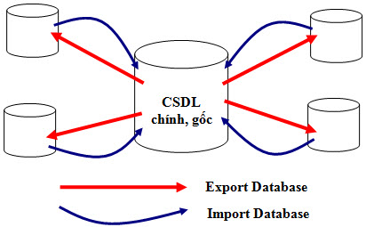Chức năng Inport Database cho phép lấy dữ liệu câu hỏi từ các ngân hàng dữ liệu ngoài (tệp CSDL khác) vào Ngân hàng dữ liệu hiện tại. Như vậy vai trò của các lệnh Export Databasevà Import Database được mô tả trong sơ đồ sau: