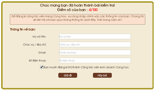 - Người của công ty sẽ liên hệ lại với bạn thông qua các thông tin trên để làm tiếp các bước tiếp theo của việc trở thành Cộng tác viên Cùng học.
