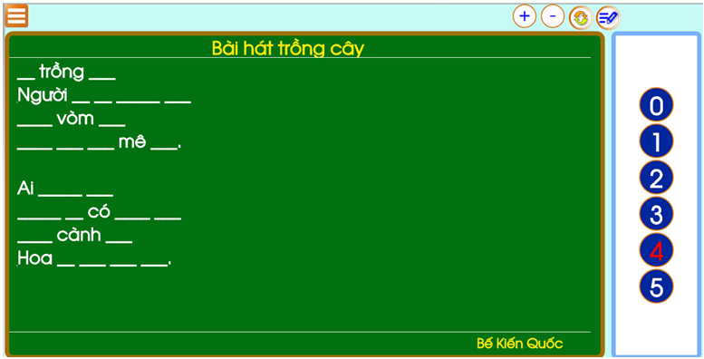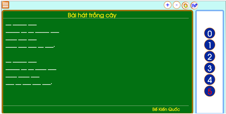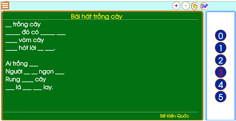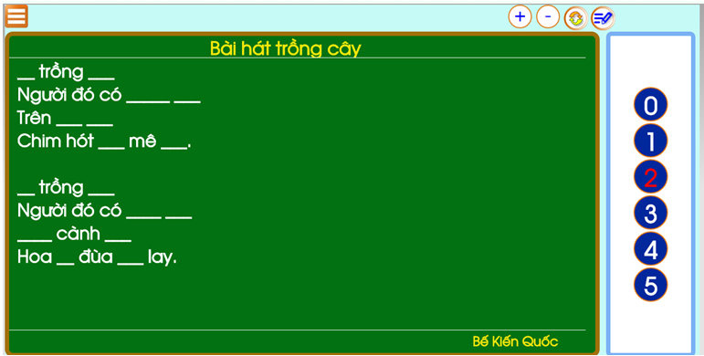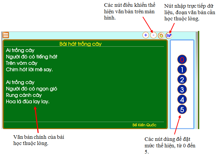 Toàn bộ “bí quyết” của bài học thuộc lòng nằm ở các mức thể hiện văn bản được điều khiển bới các nút có số 0, 1, 2, 3, 4, 5 ở bên phải màn hình.