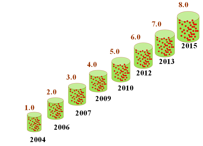 Hình sau mô tả dòng thời gian phát triển bộ phần mềm iQB 8.0.