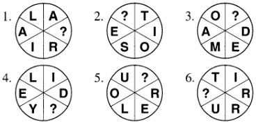 Đặt đúng mỗi chữ cái trong mỗi vòng tròn để tạo một từ có sáu chữ cái, đọc theo chiều kim đồng hồ.