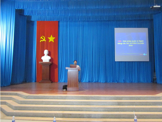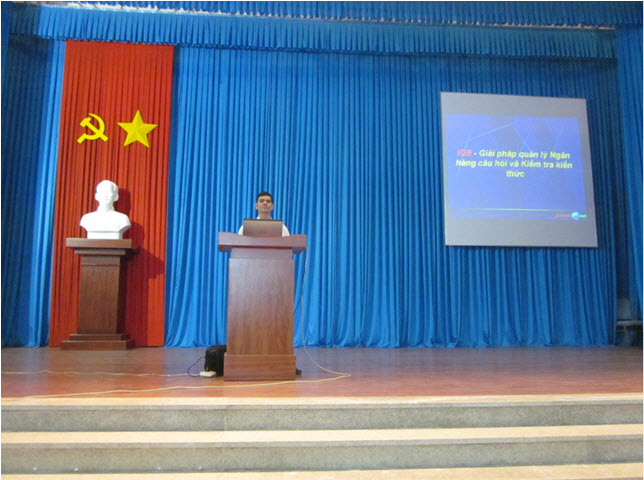 Sau đó công ty School@net lên trình bày phần chính của hội thảo. Mục đích của hội thảo này là trình bày các tính năng mới nhất của bộ phần mềm iQB 7.0 là giải pháp tin học hóa việc kiểm tra, đánh giá kiến thức trong các nhà trường phổ thông và đại học. Ông Bùi Việt Hà thay mặt công ty School@net trình bày tại hội thảo.